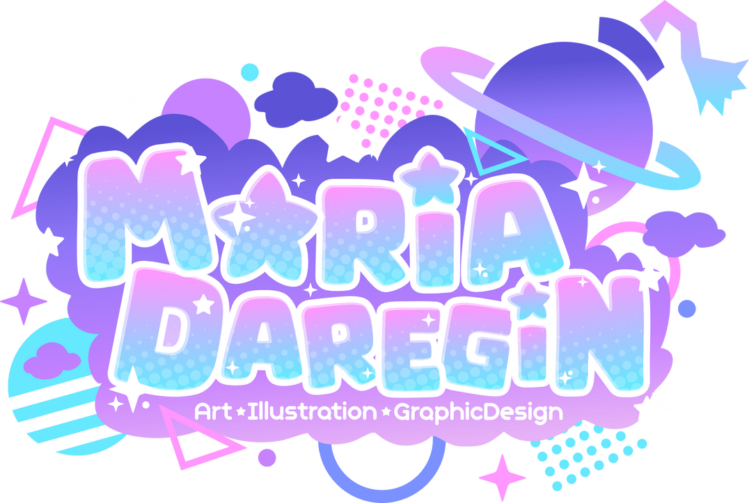 my name is Maria DaregiN I'm a freelancer artist and graphic designer, love videogames, the making of them, comics, arts and crafts, and colorful illustration RETROWAVE and VAPORWAVE core fan.